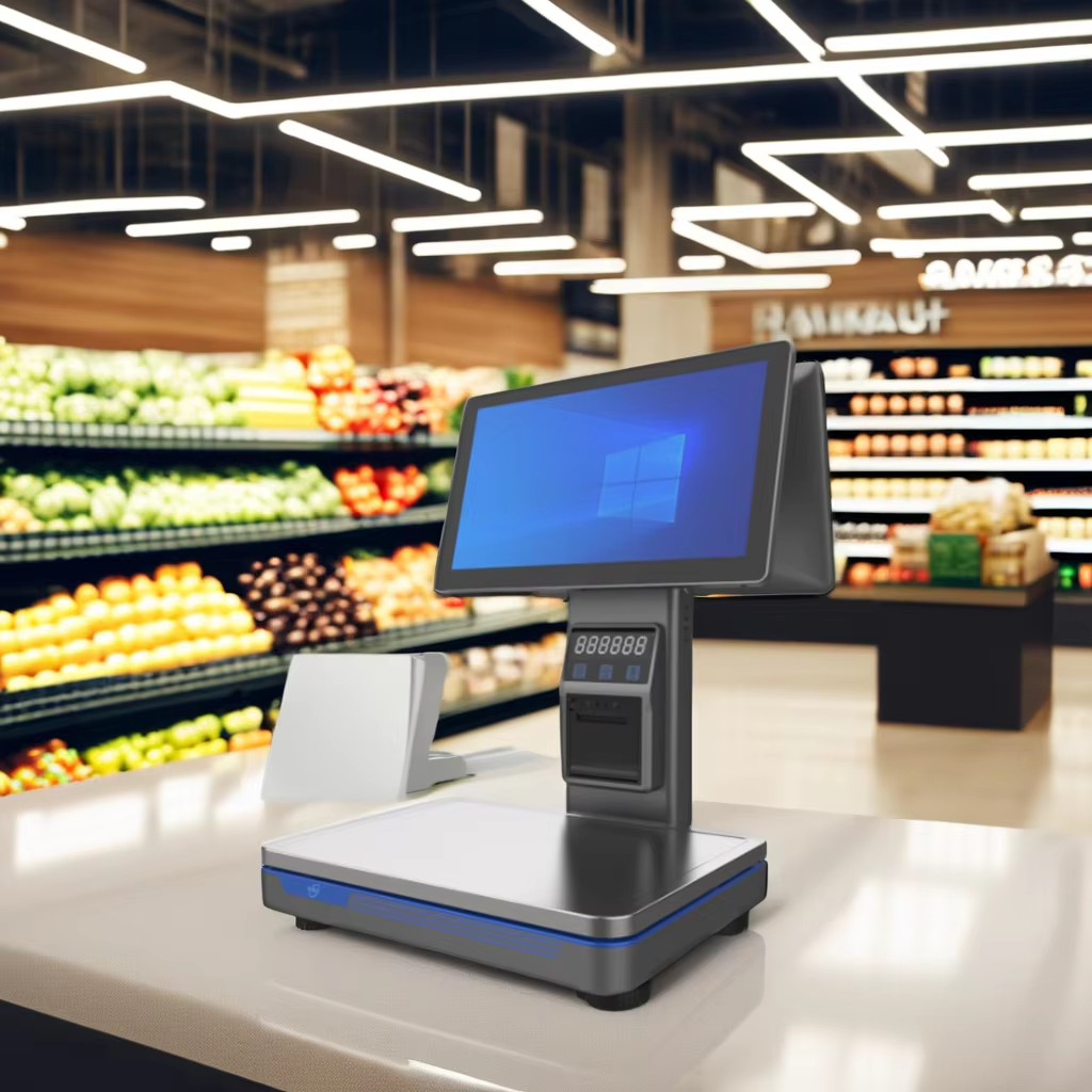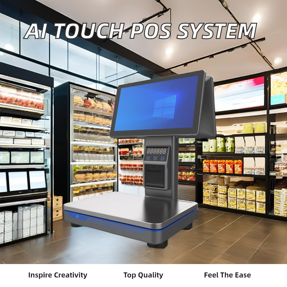 NB-ES2 The AI cash register scale features a 15.6-inch capacitive touch screen with 10-point touch capability, offering high resolution at 1366*768 for superior display clarity. Equipped with Windows 7/10 OS and an Intel i5 CPU, it ensures smooth operation for supermarket applications. The built-in 58mm thermal printer and versatile interfaces like USB, RJ45, VGA, and cash box ports enhance functionality. With a weight range of 40g-15kg and division accuracy of 2/5g, it provides precise weighing performance.